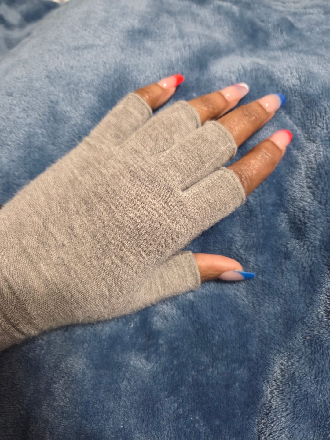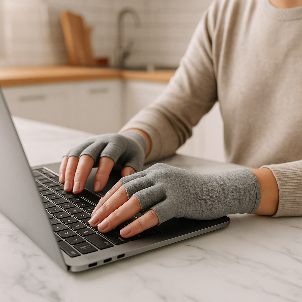 I have arthritis in my hands, and some days it’s hard to use my laptop or tablet, so I decided to try these gloves. They’re very comfortable, and when I wear them, the pain in my hands almost disappears. They slip on easily, keep my fingertips free for typing or gripping things, and after a few minutes,